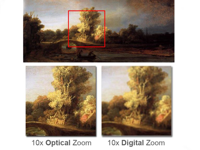 Optical zoom is achieved by using the lens on your visualiser. It means when you zoom in on a specific part of an image with your visualiser it will maintain the resolution, showing the smaller area of the image at the same quality as when showing the image in full – no blurring and no loss of quality.
